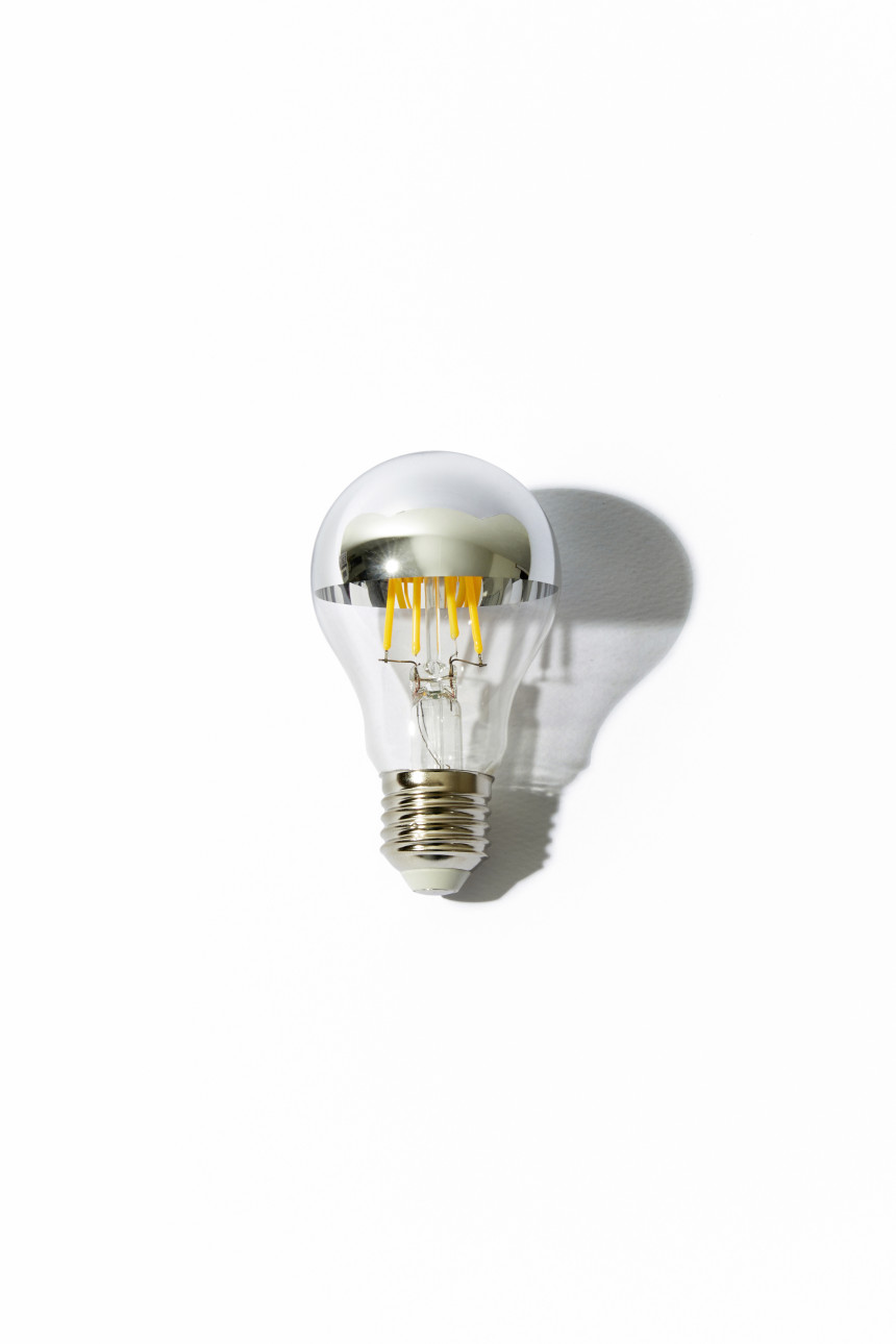 앞쪽이 크롬으로 덮여있는 반사전구입니다. 빛이 앞으로 직접 퍼지는 형태가 아니라